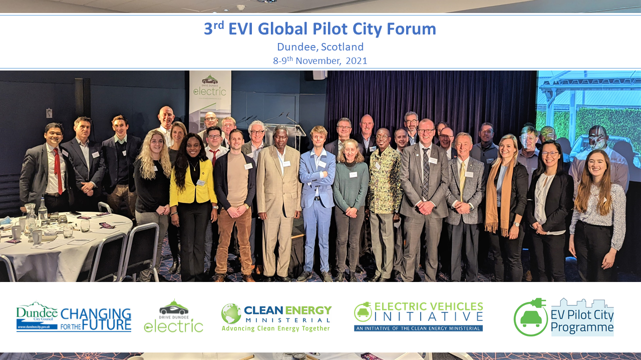 8-9 November 2021 DUNDEE, SCOTLAND-- The CEM EVI Pilot City Forum 2021 held its annual international EV conference in collaboration with Drive Dundee Electric and the International Energy Agency with delegates from around the world tuning in to a two day event to discuss the uptake of e-mobility worldwide. This is the first time the EVI- Pilot City Forum took place in a hybrid event, with participation from around the globe and live translation available.