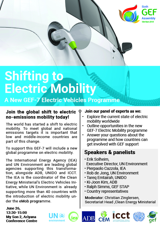 Panelists will discuss the current state of electric mobility worldwide, outline opportunities under the newly-launched GEF-7 Electric Mobility programme, and respond to questions about how countries can get involved.